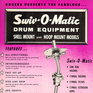 Whether you been playing for fifty years or just starting out this is intriging advertisments from a era by gone. This is Swiv-O-Matic equipment. We will be adding more soon. If you ahve any vintage drum material please consider submitting it to be included on the 2bseated.com website.